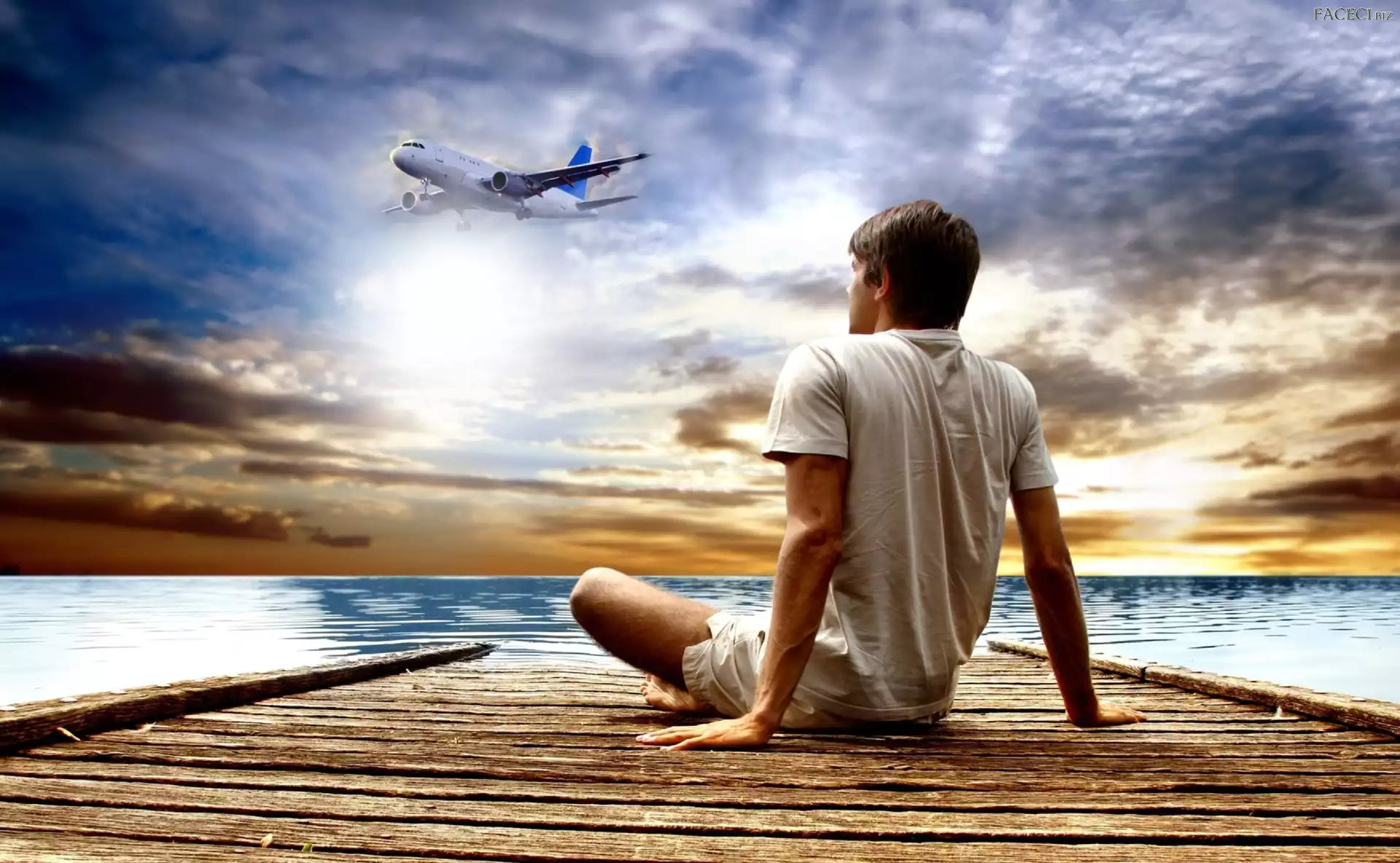 Molo, Na, Morze, Samolot, Mężczyzna - faceci.biz